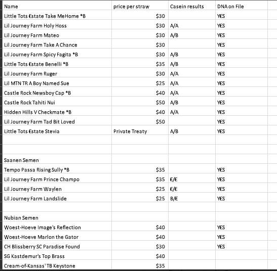 We have semen available from most of our herd sires and some past herd sires. We do have a $100.00 minimum on semen purchases, although that can be combined with other people, as long as the semen is transferred at one time. We are happy to deliver semen for FREE to any of the shows we are attending with prior arrangement made, and we will sell here at the farm.